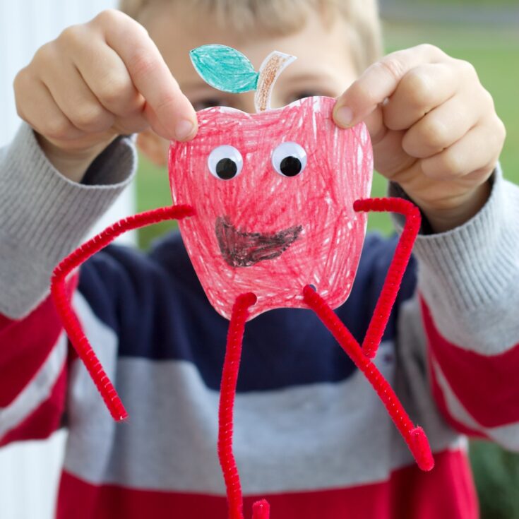 I gave my boys the option of attaching an adhesive magnet to the back of their paper so it can be attached to the refrigerator or just placing their Harvest Buddies on a bookshelf in their room. They chose to keep the Harvest Buddies in their rooms, and have enjoyed repositioning their Harvest Buddy’s legs and arms!